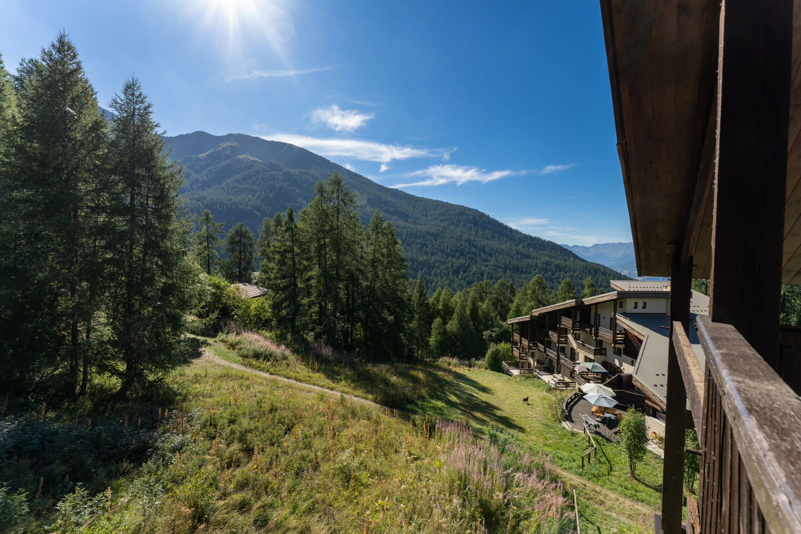 Balcon orienté sud avec une vue sur la montagne, local ski/vélo